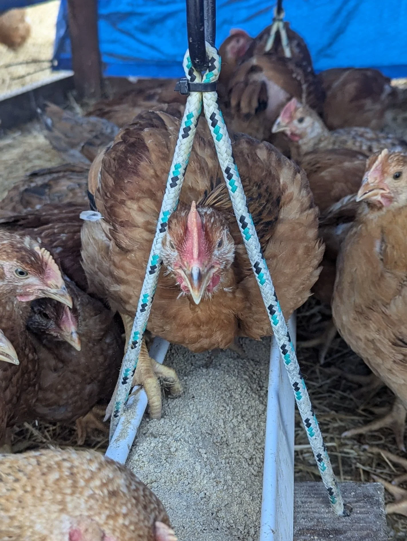 The broilers go out on pasture at 3 weeks old, where they are raised in coops that are moved daily to fresh pasture. We provide fresh water and a certified organic, NONGMO feed as well as having fresh pasture to forage on for insects, grass, and seeds. We raise Freedom Rangers because they have better instincts to forage and grow a little slower than commercial breeds. In our opinion this breed provides a better-quality meat.