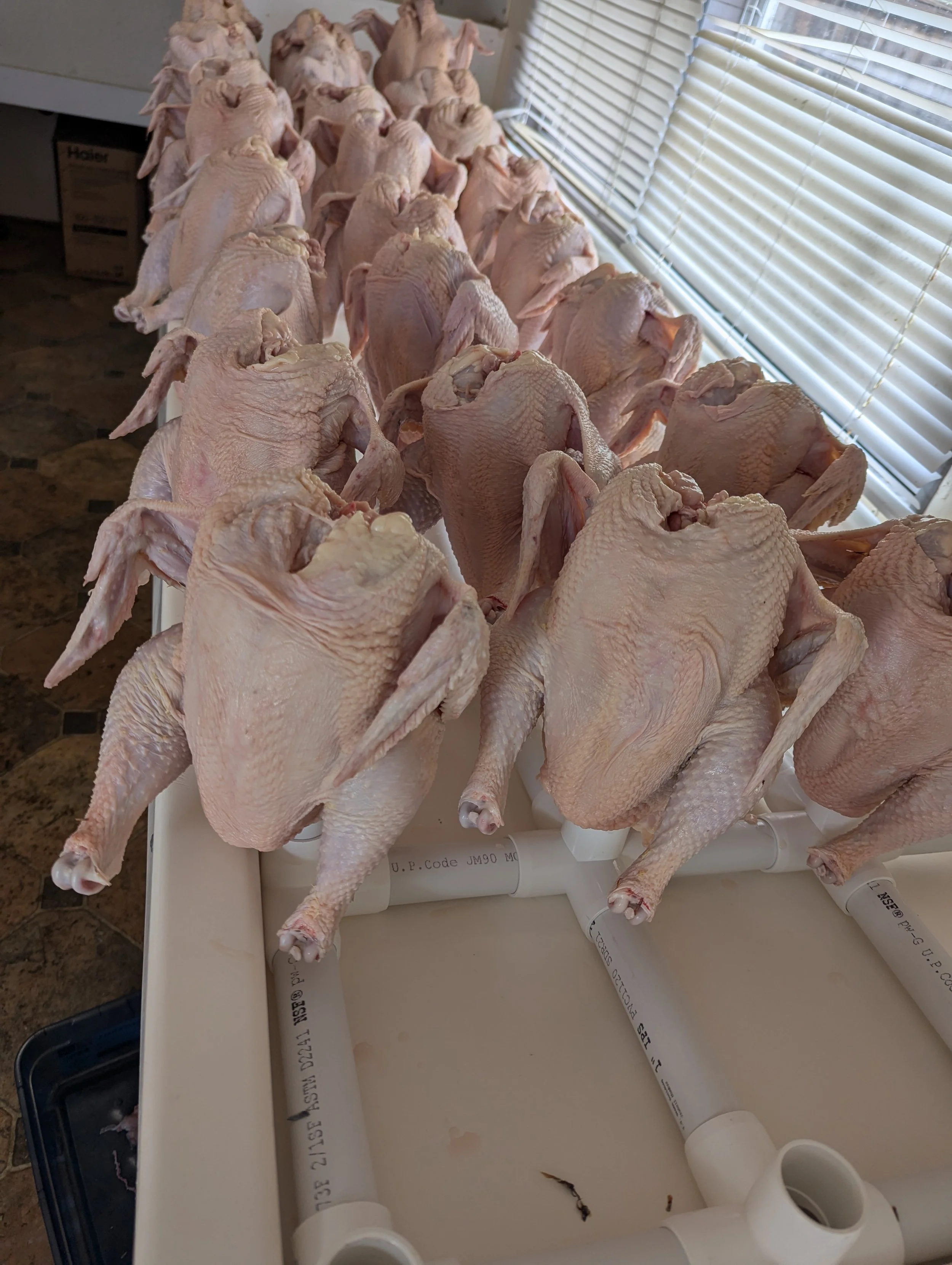 We only sell our roasting chickens whole, which is required by law due to our on-farm harvests.